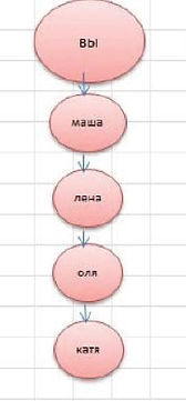 1. В основе построения структуры (сети, группы людей под вами) по нашей системе лежит метод рекрутирования "в глубину". Это значит, что найденных вами людей нужно регистрировать друг под дружку, вниз, по принципу 1-1-1-1-1-1-1-1. Для наглядного примера, давайте рассмотрим схему1, где Маша, Лена, Оля и Катя - найденные вами новички.